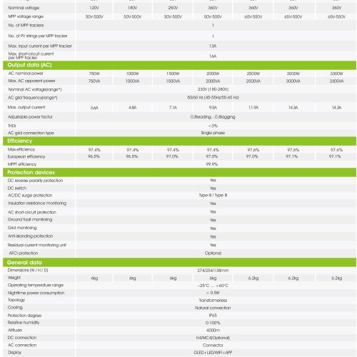 1. Thông số kỹ thuật Inverter Growatt 3kWh MIC3000TL-X