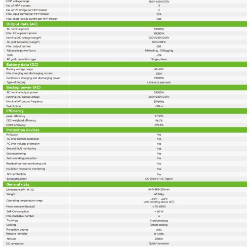 | Công suất biểu kiến AC (backup) | 10000VA |