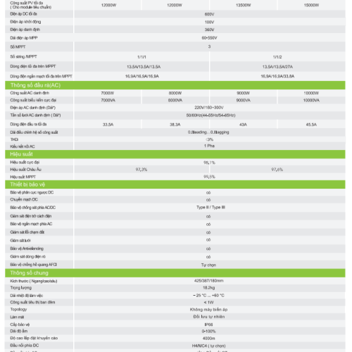 | Số chuỗi PV mỗi MPPT | 1/1/1 |