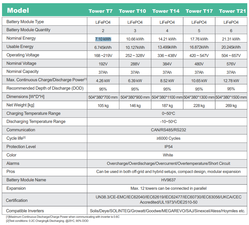 Thông số kỹ thuật Pin Lithium Dyness 21kW Tower T21 Áp Cao