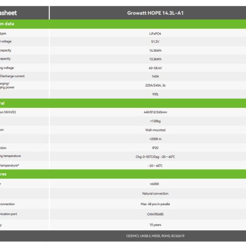 > Xem thêm Datasheet: Pin Lithium Growatt 14.3kwh HOPE 14.3L – A1