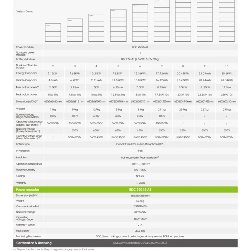 | Mô-đun pin | ARK 2.5H-A1 (2,56kWh, 51,2V, 30kg) |