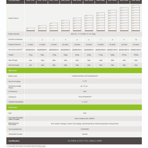Pin Growatt AXE 5.0L – C1 là sản phẩm chuyên biệt cho hệ thống điện mặt trời dân dụng và thương mại, sở hữu nhiều công nghệ tiên tiến, khả năng mở rộng linh hoạt và độ an toàn cao.
